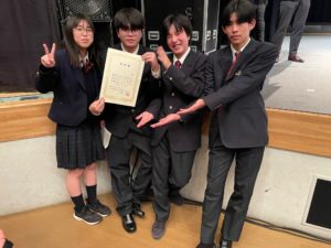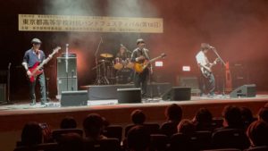 11月24日(月・振休)、福生市民会館にて東京都高等学校文化連盟主催「第18回東京都高等学校対抗バンドフェスティバル決勝大会」が開催されました。お伝えした通り、本校からは1年生バンドの「Ours!!」が決勝進出し、出場いたしました。曲目はオリジナル曲の「猛暑日」です。